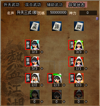 右键点击使用后可将已经学习过的一项异常状态武功遗忘掉,并洗回神力值。