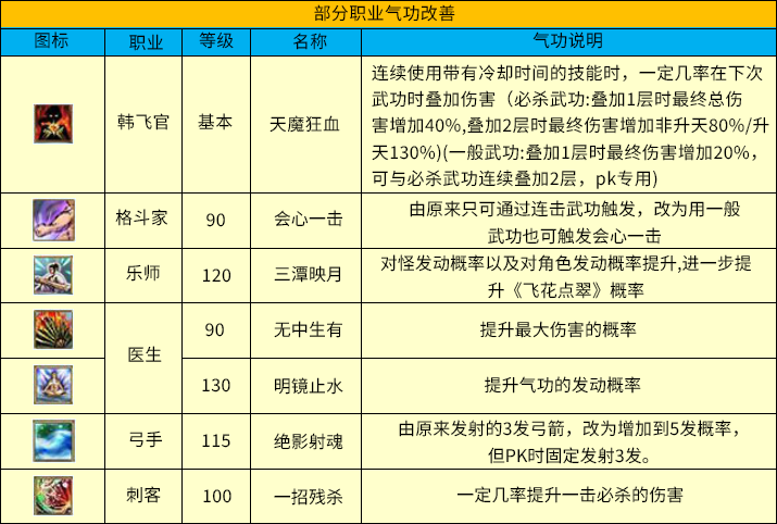 本次新版本有很大改善,除了多个气功的改善能降低打怪难度,增加技能发动概率和提升PK能力。还有一些其他内容也进行了改善,让我们一起了解一下。