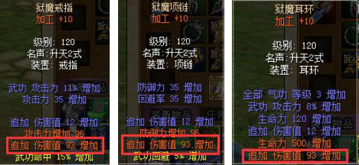 新版本对一般首饰进行了改善,增加了追加伤害的属性。随着强化能力的提升,追加的伤害值也就越强。