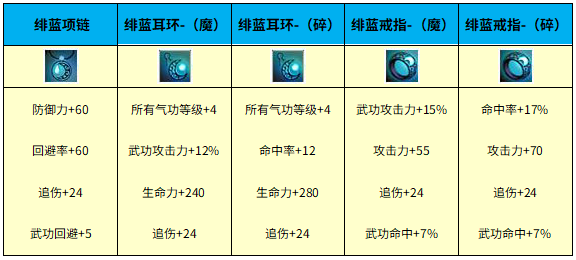 A:绯蓝首饰外表清冷神秘,属性效果非同凡响。