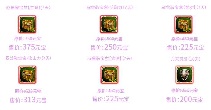 6)百宝道具部分打折活动开启