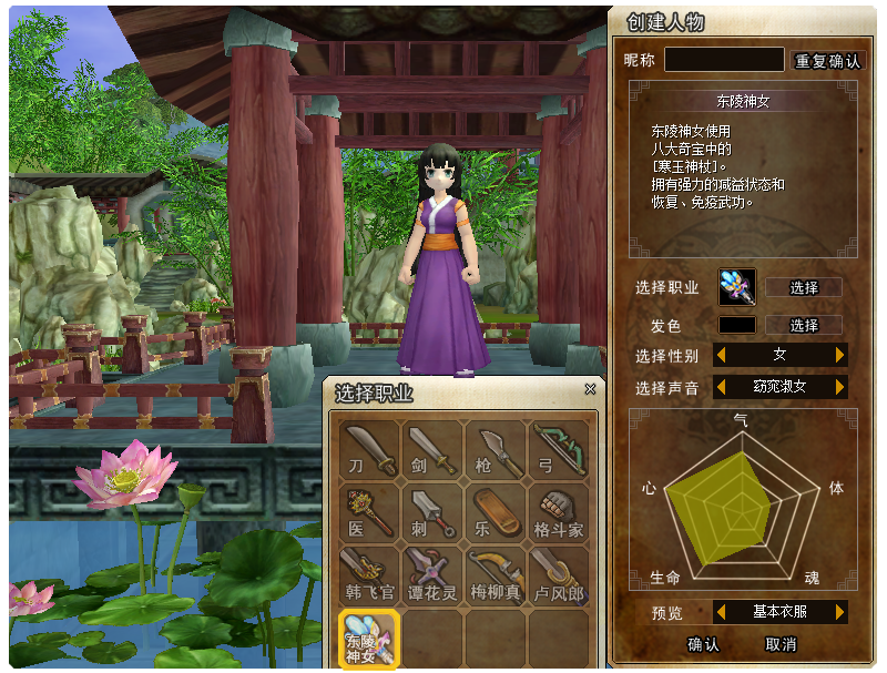 新职业“东陵神女”有别于其他职业,只有女性角色可选择。